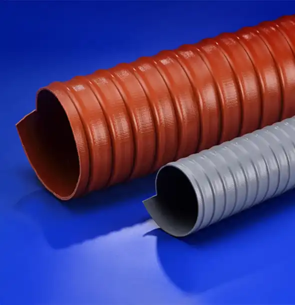 Our hoses are made from durable and high-quality materials such as ester-polyurethane, pvc coated fabric, PP and TPV coated fabric. We also provide stainless steel clamps and fittings as well.