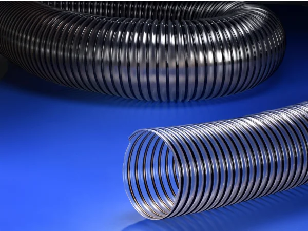 - The hose wall is made of polyurethane and has a thickness of approximately 1.5 mm. It has a spring steel wire embedded on it.